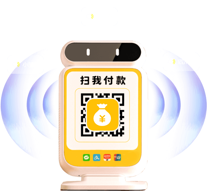 仅需一个聚合二维码,顾客用各种方式扫码都可以 无需电脑手机,4G/wifi双信号 故障、损坏、遗失:终身免费维保换新